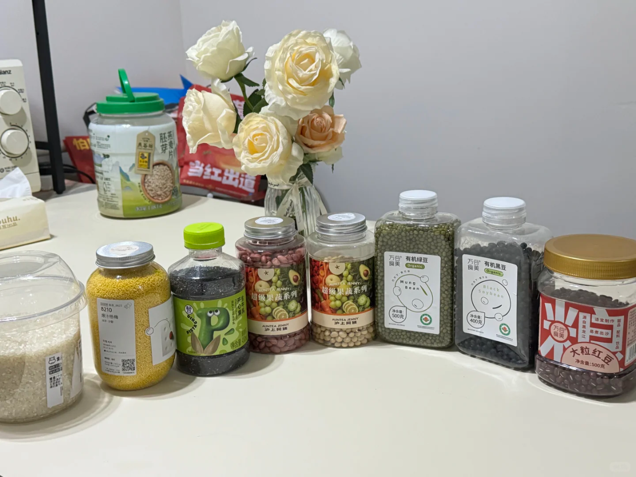 除此之外,还有一些比较大的塑料瓶,还可以用来收纳杂粮和豆子,这样就能防潮防虫,拧紧瓶盖儿放一年都不会坏。