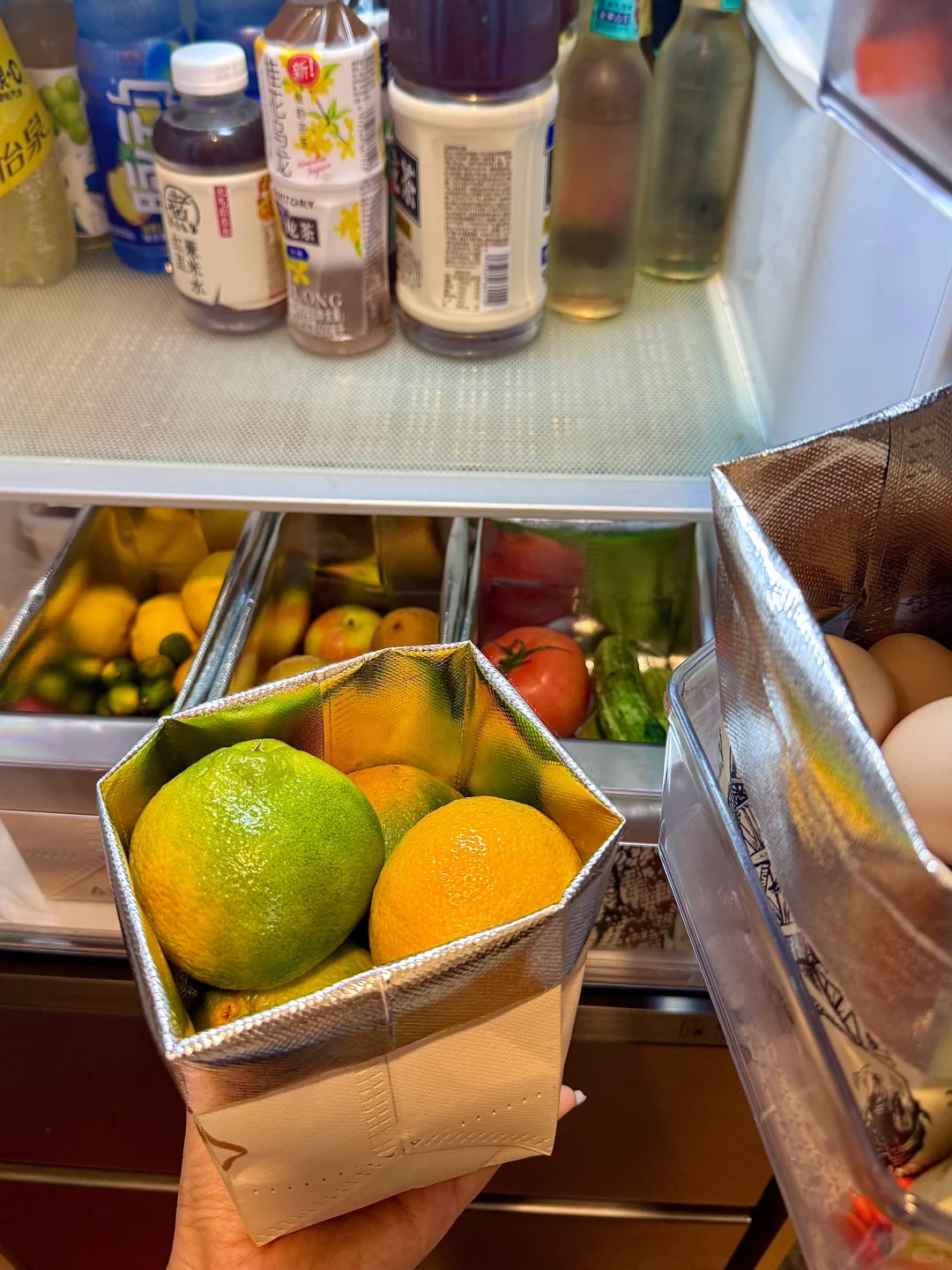 而且一遍一遍的夸奖,这袋子的质量真不错。当我还在苦恼应该买什么收纳工具为冰箱做收纳的时候,打开她家的冰箱,已经满是整齐的外卖袋子了。