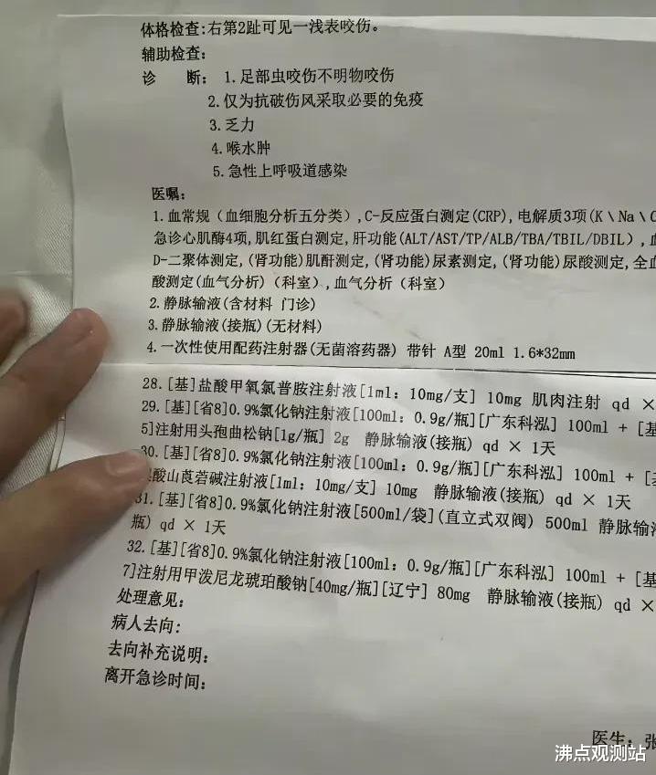 医生按《常见动物致伤诊疗规范》来,先安排留院观察,输上液让护士盯着生命体征,