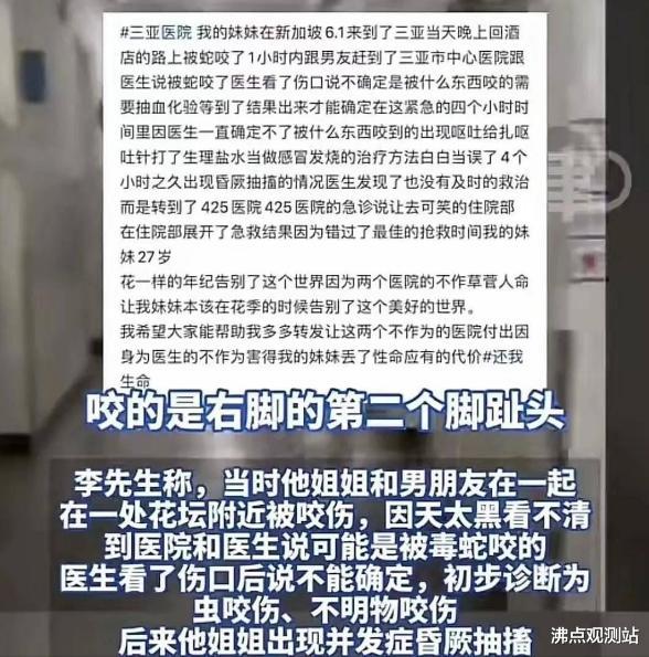 家人们谁懂啊,最近“三亚女子被蛇咬去世”这件事闹得沸沸扬扬的,本来大家都觉得是医院抢救不力,结果卫健委一公布时间线,这剧情直接180度大转弯。