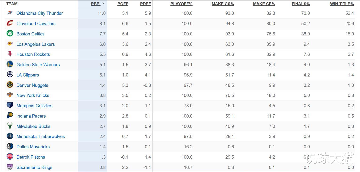 于此之际,我们不妨先来参考下美媒体《ESPN》更新的季后赛晋级概率,以此咱球迷朋友是否也同意这般情况呢?