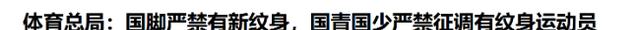 但是在2021年,我国体育总局对国足的纹身,就做出了禁止新增的规定。