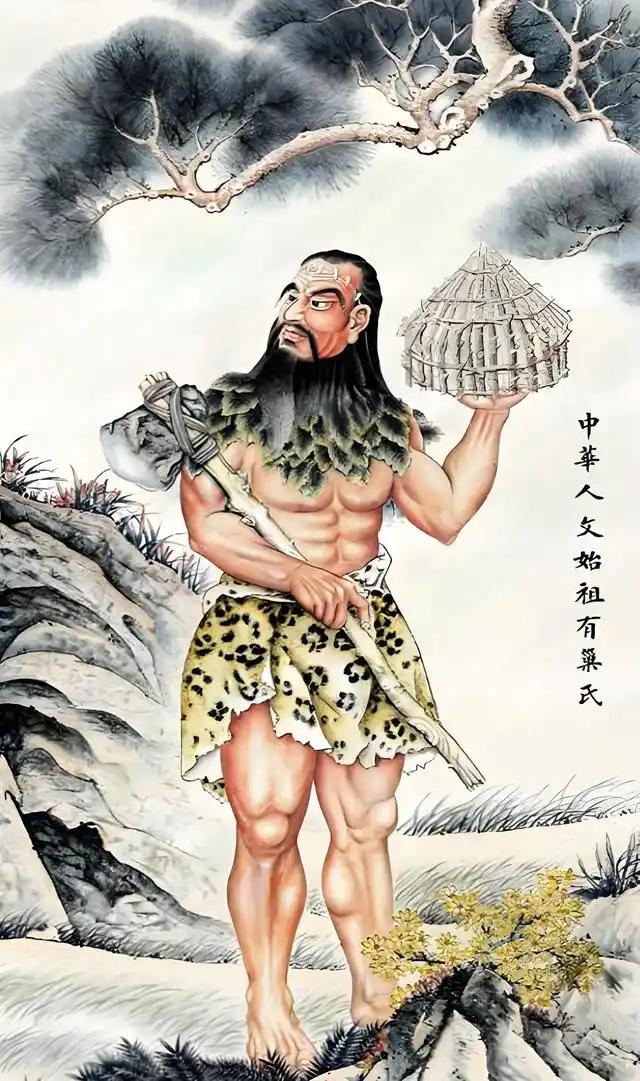 《韩非子 五蠹》:上古之世,人民少而禽兽众,人民不胜禽兽虫蛇。有圣人作,构木为巢以避群害,而民悦之,使王天下,号曰有巢氏。民食果蓏蚌蛤,腥臊恶臭而伤害腹胃,民多疾病。有圣人作,钻燧取火以化腥臊,而民说之,使王天下,号之曰燧人氏。中古之世,天下大水,而鲧、禹决渎。