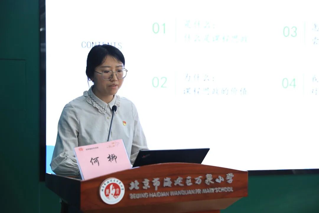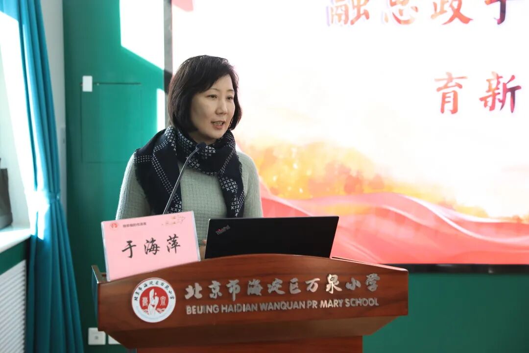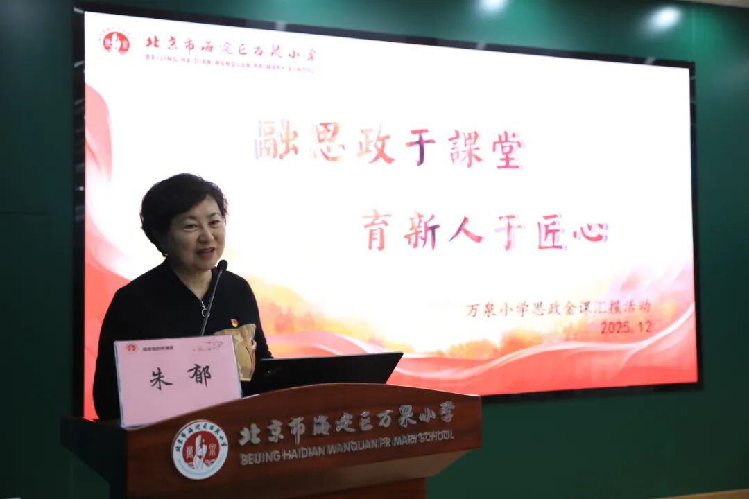 为全面落实立德树人根本任务,推动思想政治教育与学科教学深度融合,2025年12月24日下午,北京市海淀区万泉小学在万柳校区成功举办“融思政于课堂 育新人于匠心”思政金课汇报活动。北京市教科院德育研究中心谢春风主任莅临指导,学校党委书记朱郁,副书记、校长金毅及全体党委委员、教育教学干部、教师代表共同参加。