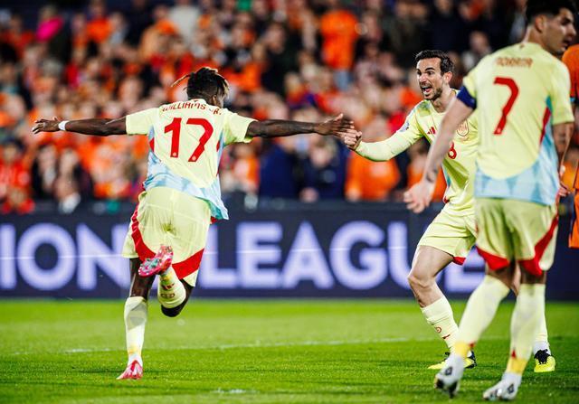 荷兰队在欧洲杯上冲进了四强,但很遗憾被英格兰队拦在了决赛的门槛外。现在他们在FIFA排名第七,实力依然很强,不能小看。这场比赛,尼科-威廉斯率先得分,接着加克波和赖因德斯接连进球。就在大家以为荷兰队要赢了的时候,梅里诺在第93分钟踢进了绝平球,2比2,西班牙队在客场侥幸逃脱了失败的命运。