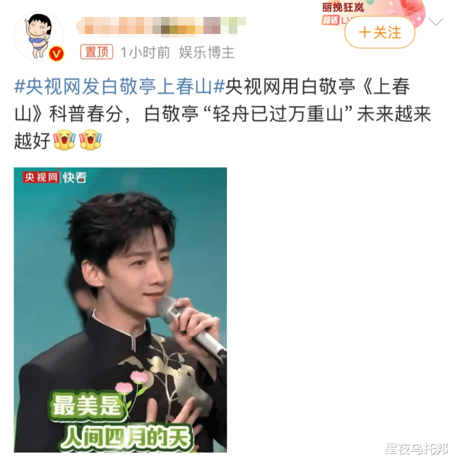 而最近到了春分,央视再次下场,发布了白敬亭演唱《上春山》的个人part。