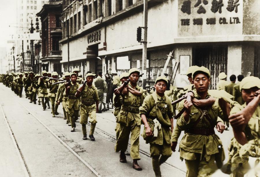 5月,解放军直插上海市中心、途经南京路时,部队保持着严明纪律,即便行经繁华商街也队列整齐,既展现了作战后的疲惫与坚毅,也让上海市民真切触碰到城市解放的时刻——这张照片正是上海解放进程中“军队入城、城市迎新”的鲜活见证。