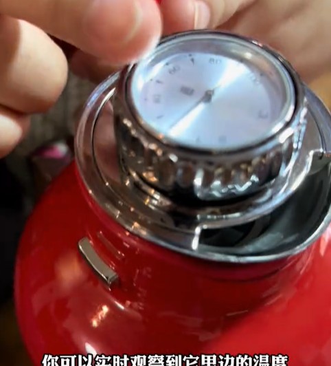 和那种传统的水壶确实是不一样,刚一打开,胡老师就介绍上边有一个可以直接看到温度的东西。