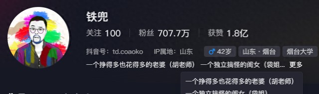 在铁兜的简介上介绍胡老师是一个挣得多花的也多的老婆,有多能花呢?