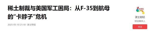 稀土制裁与美国军工困局:从F-35到航母的“卡脖子”危机 2025-05-10 21:18·波士财经