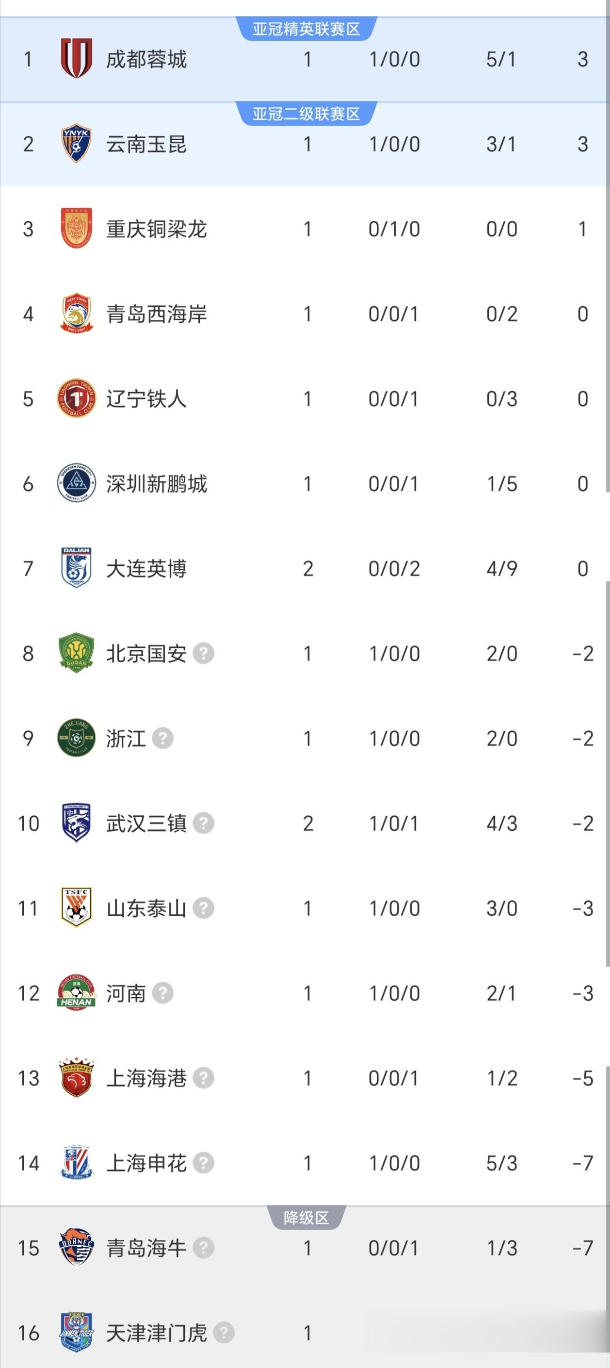随着本场比赛结束,中超联赛最新积分榜如下:
