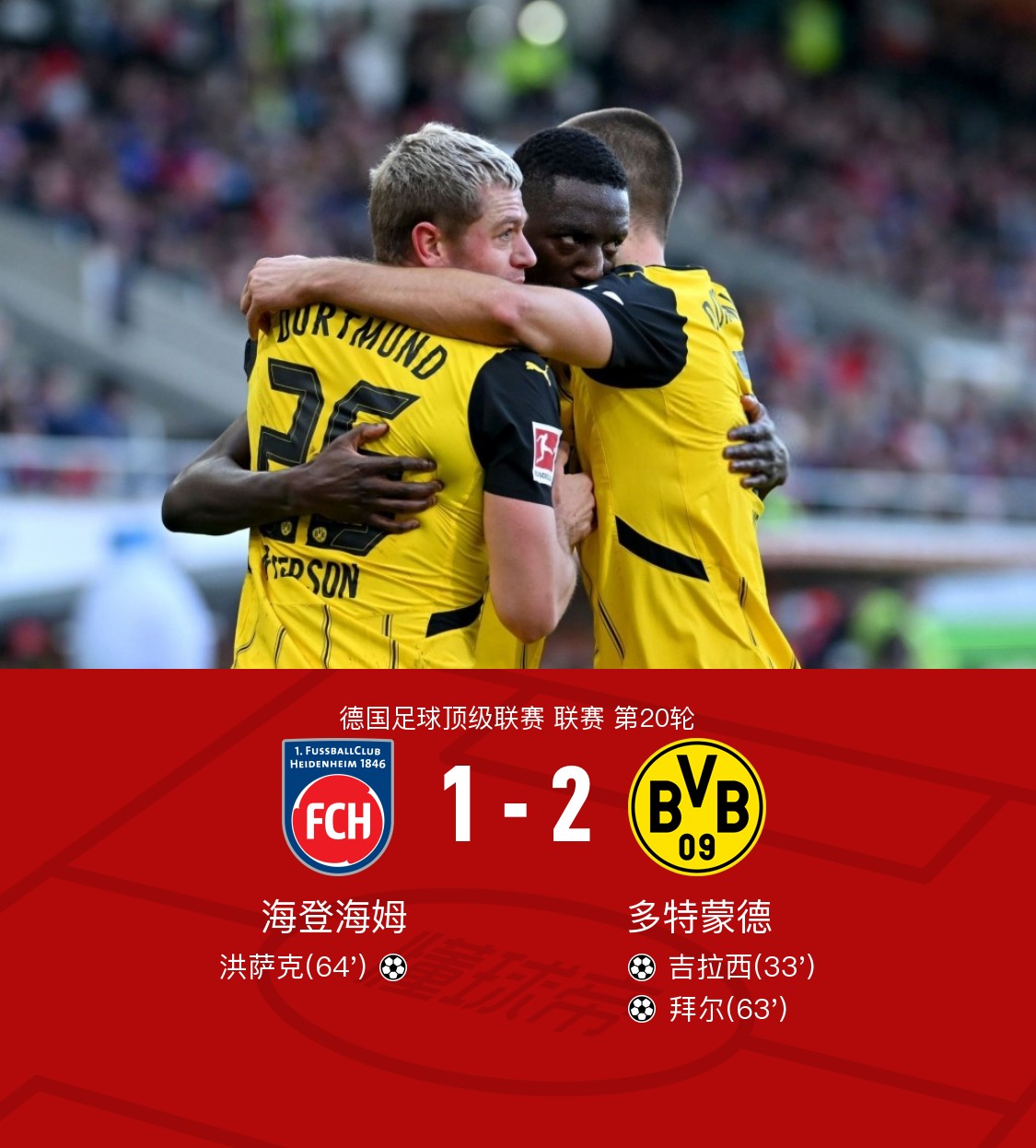 多特蒙德在米克·图尔堡执教的最后一场比赛中迎战海登海姆。比赛第33分钟,吉拉西通过角球机会打破僵局,帮助多特蒙德取得领先。尽管海登海姆在比赛中创造了一些机会,但最终多特蒙德凭借稳健的防守以2-1获胜,暂时攀升至第10位。