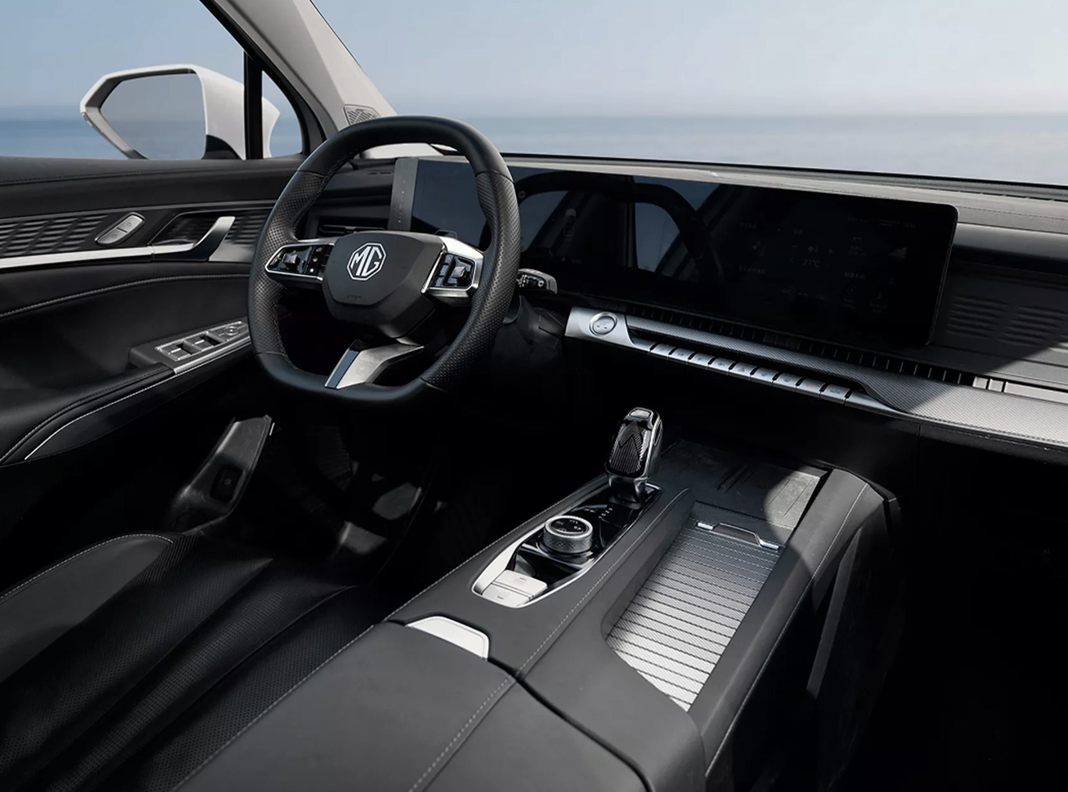进入车内,名爵MG S9通过大面积的软性材质包裹、银色金属饰板、黑灰色麂皮绒材质的装饰下,整个触摸感,质感也都达到了跨级别车型的尊贵享受。环抱式的座舱采用了标准的T字形中控台,配备了平底式多功能方向盘,操控岛加入了传统的换挡手柄,后方还保留了经典的圆形驾驶模式切换旋钮,前方配备了手机无线充电面板,右侧是两个标准的杯架,后方是宽大的中央扶手箱。科技感方面,该车配备了由全液晶仪表+大尺寸中控屏组成的一体式连屏设计,采用了上汽集团提供了车机系统,操作更加丝滑,支持时下主流的互联功能。配置方面,全液晶仪表、中控大屏、自动空调、全景天窗、BOSE音响、座椅加热、座椅通风、座椅按摩等配置也是应有尽有。
