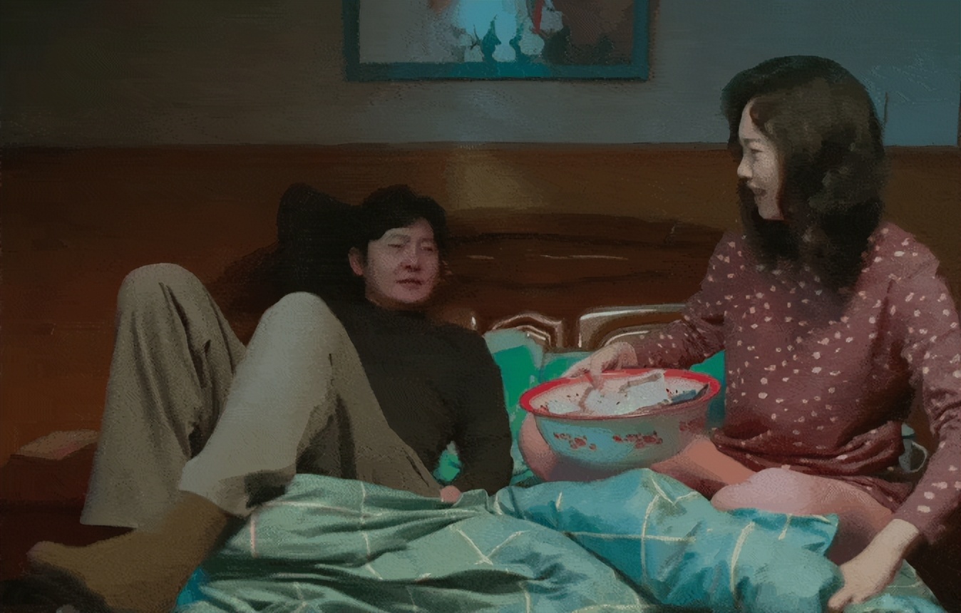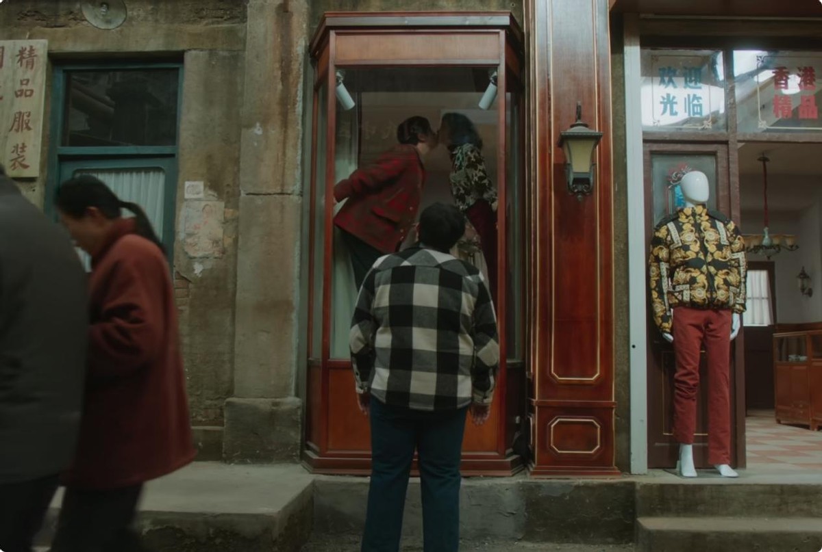 预告片中,色彩鲜明的复古衣着、充满烟火气的老街巷、带着年代感的国营理发店和小卖部,还有牡丹花纹暖壶、搪瓷杯等老物件,都精准复刻了90年代东北的市井生活氛围。