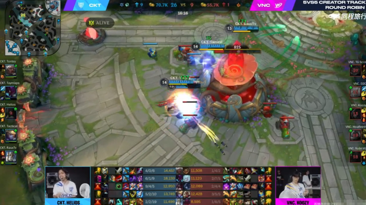 比赛开始没多久,双方在河道爆发了一波小规模团战,凭借着出色的拉扯,CKT拿到“一血”。而就在这“一血”诞生没过多久,CKT的螳螂再次发力,帮助下路成功完成“击杀”。前期已经取得优势的CKT稳扎稳打,在打野的帮助下,中路与下路也是捷报连连。比赛来到10分钟左右的时候,CKT已经顺利滚起雪球,经济已领先了8000左右。最终,CKT也把雪球越滚越大,以非常轻松的方式成功击败了VNC,赢得了比赛的胜利。