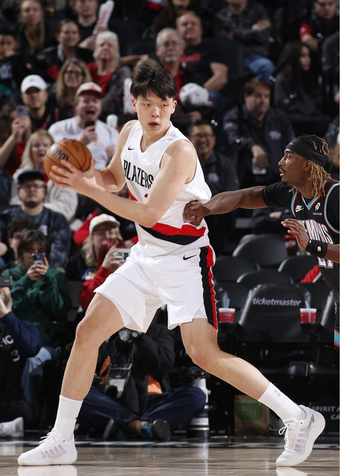 杨瀚森3分钟1板3犯,李凯尔11+6填满数据栏,开拓者双杀灰熊