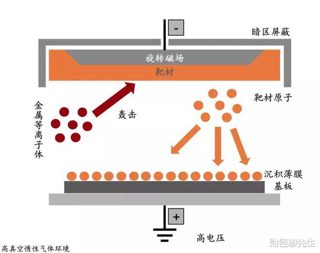 方向11,靶材,国产化率<20%,又被称作溅射靶材,是用于薄膜制备的核心材料。原理是高能粒子来轰击靶材表面,让靶材表面的原子沉积在基底。靶材基本被日本,美国企业垄断,4家公司占据全球8成以上的份额,分别是:JX日矿金属、霍尼韦尔、东曹、和普莱克斯。