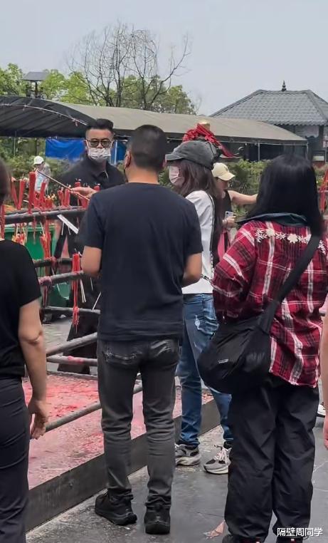 前一天4月16日就有网友在老君洞看到了她,她和丈夫来此烧香。