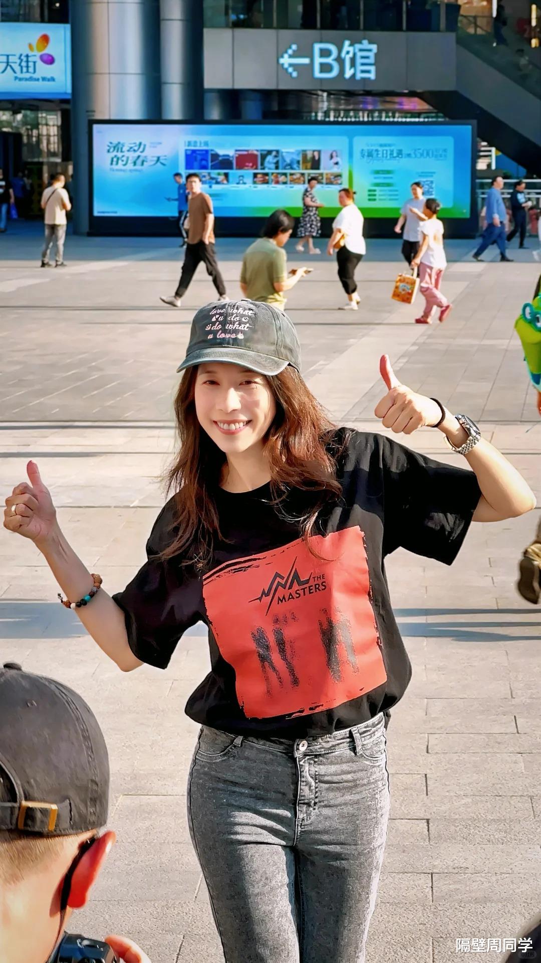当天她还戴着口罩,不是真爱粉的话很难认出来。