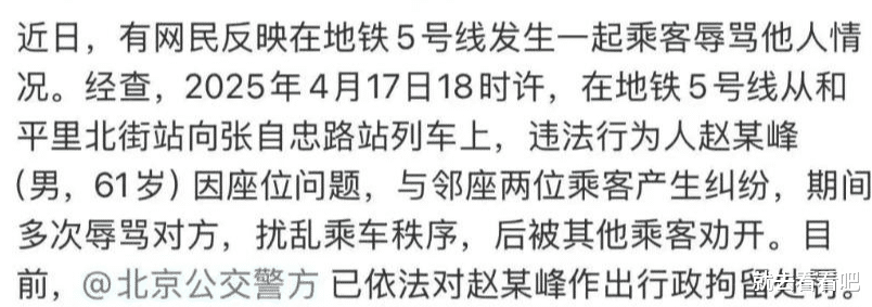 视频在网络上迅速传播,网友们纷纷表达了自己的态度。对大爷的行为,绝大多数网友都表示谴责,认为他的行为粗鲁无礼,缺乏基本的尊重。 这显示了网络时代舆论的力量,也反映了社会对文明和尊重的普遍追求。同时,也有一些声音,开始思考事件背后的社会现象。 这是否反映了社会中存在的某种不公平?我们是否应该更加关注弱势群体的权益,给他们更多的理解和尊重? 北京警方迅速介入调查,并对大爷进行行政拘留,这体现了法治的公正与力量。
