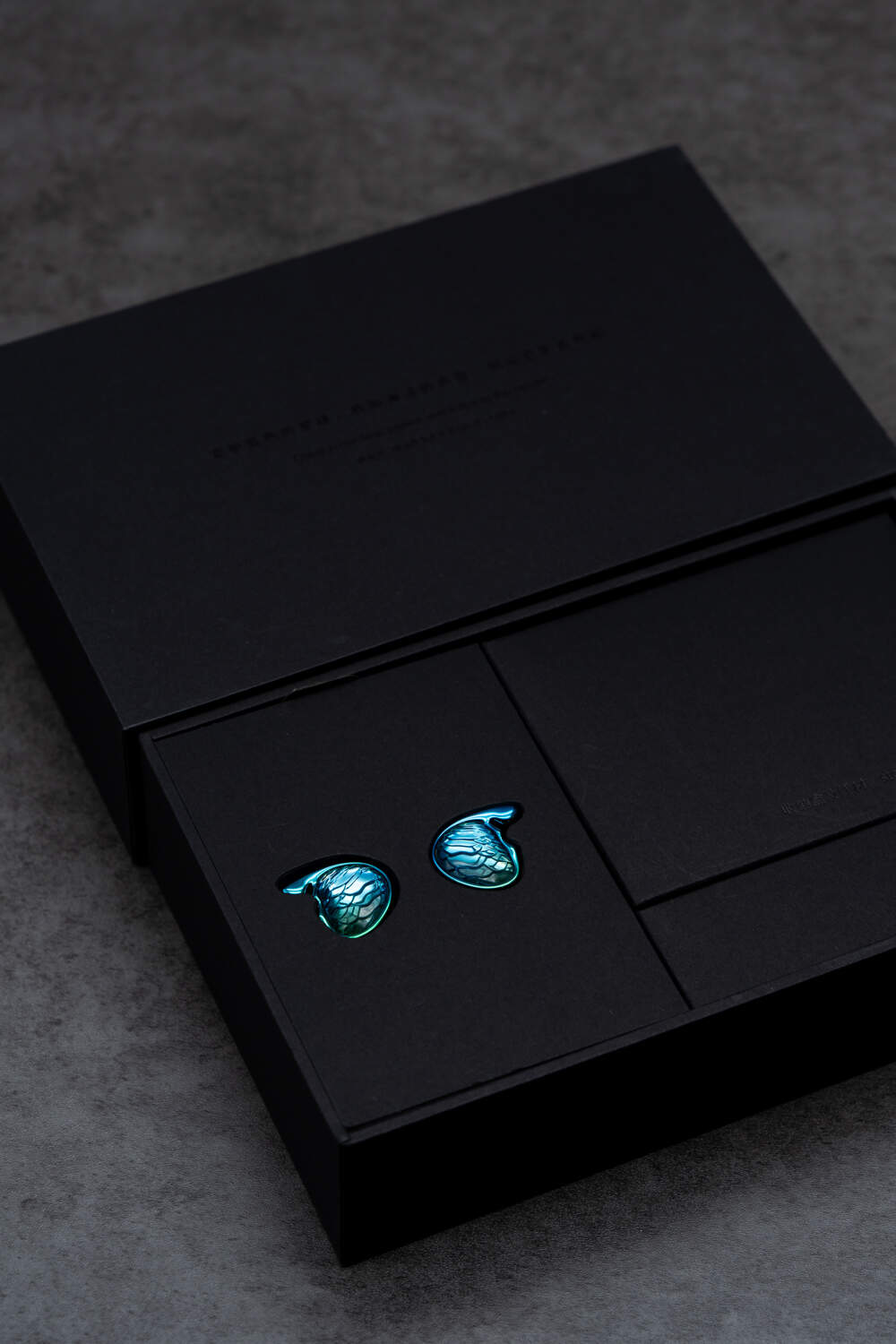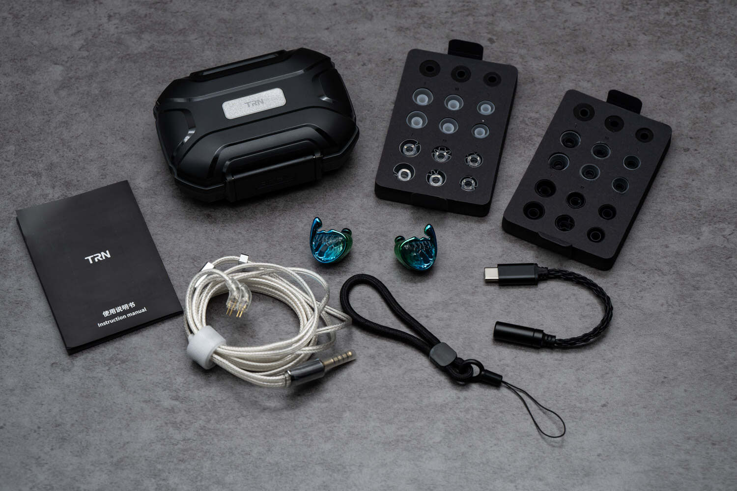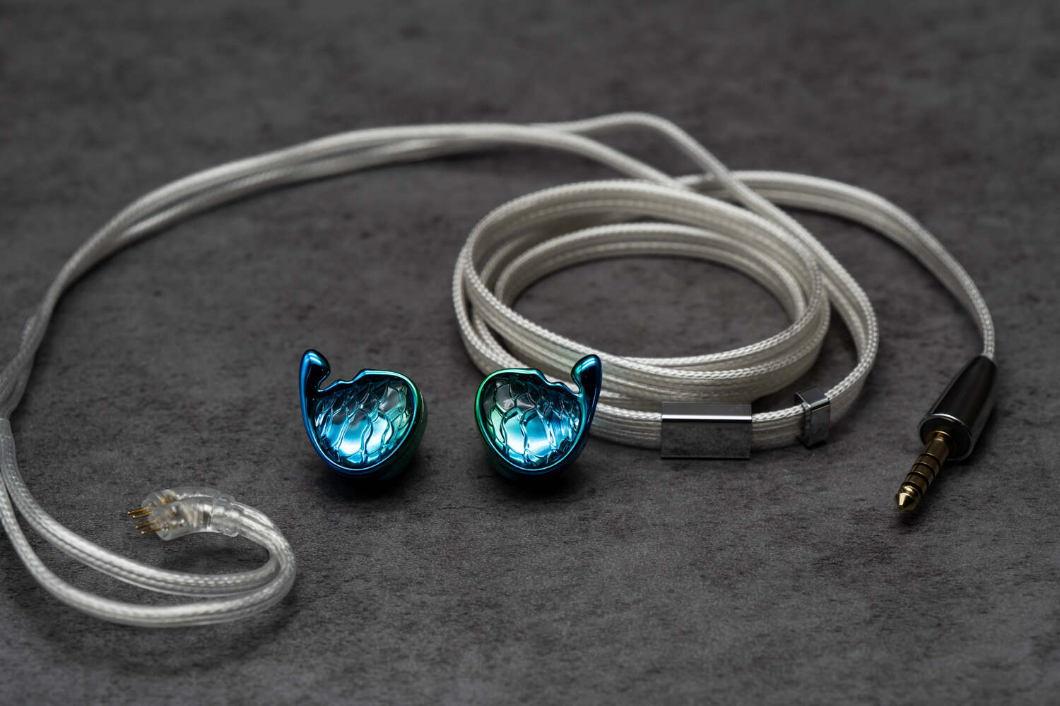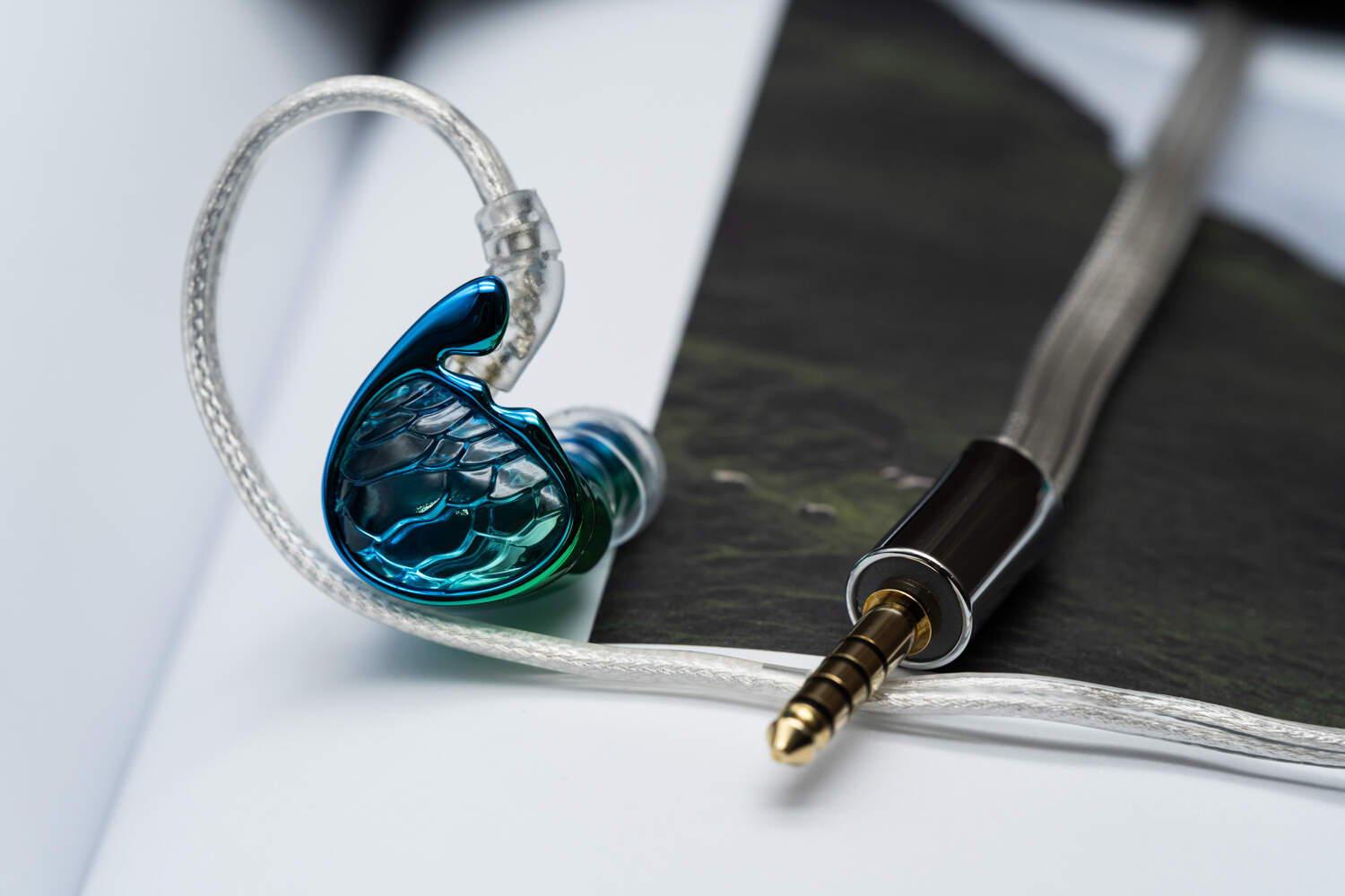 外观方面,TRN这两年的新品耳塞绝大多数都和海洋有关,设计了很多外观独特但工艺精良的耳塞产品,可惜他们设计师里头肯定有克苏鲁爱好者,偶尔会做出来一些明明做工很好但外观“惊世骇俗”的产品来;但是,这一次的美人鱼是难得的颜值和工艺同时处于他家巅峰的产品,漂亮的配色(紫灰、蓝绿双色可选)、精致的工艺、别出心裁的腔体上方“飞”出来的海浪,以及透明面板之上点睛之笔的立体浮雕,将海洋元素和美人鱼的身体特征都展现出来,美观而得体。同时,不论是哪个配色,其金属腔体之上都采用了渐变电镀工艺,色彩的过渡自然而闪亮,相当出彩。美人鱼的标配线材是四股并列的无氧铜线,线皮为白色,插头和五金件是金属银色镜面,插头为圆形截面而分线器是长方体,插针则为半透明磨砂材质,插针的安装位置与腔体上的“鱼鳍”形海浪装饰完美错开,丝毫不会影响佩戴;再者,虽然美人鱼是金属材质但单边重量不到6.5g,加上不长的导管,佩戴方面的压力较低,再加上美人鱼标配了15对不同材质和类型的耳套,用户很容易找到适合自身的佩戴方案。