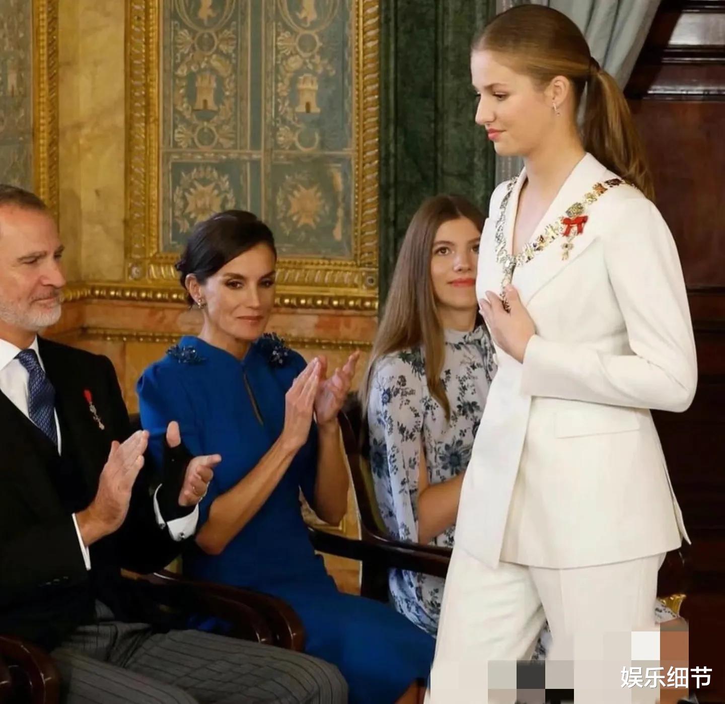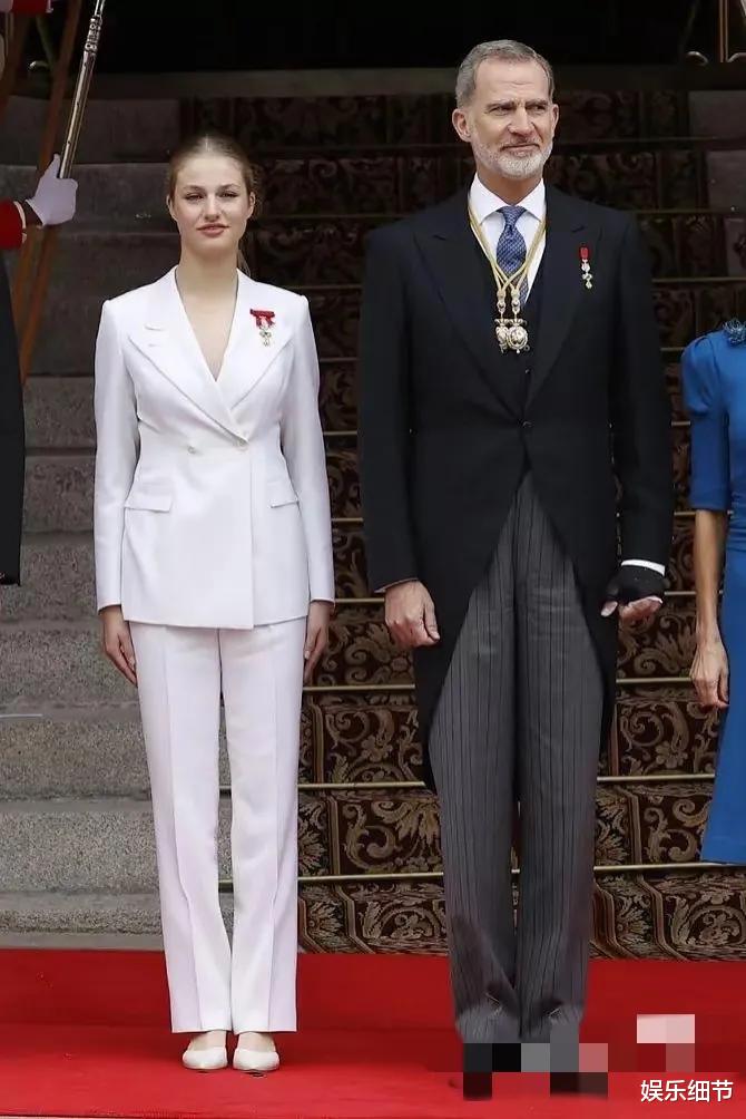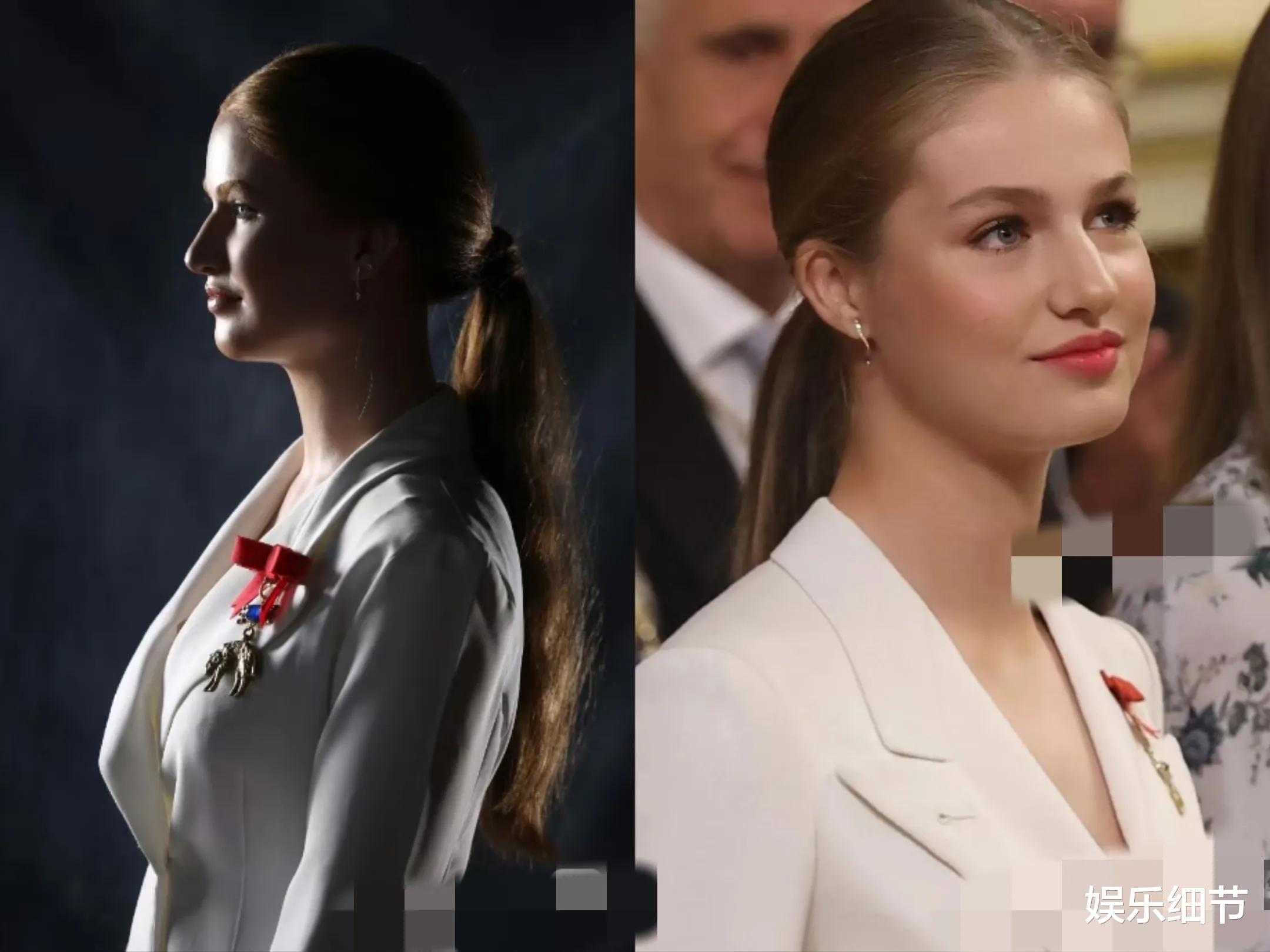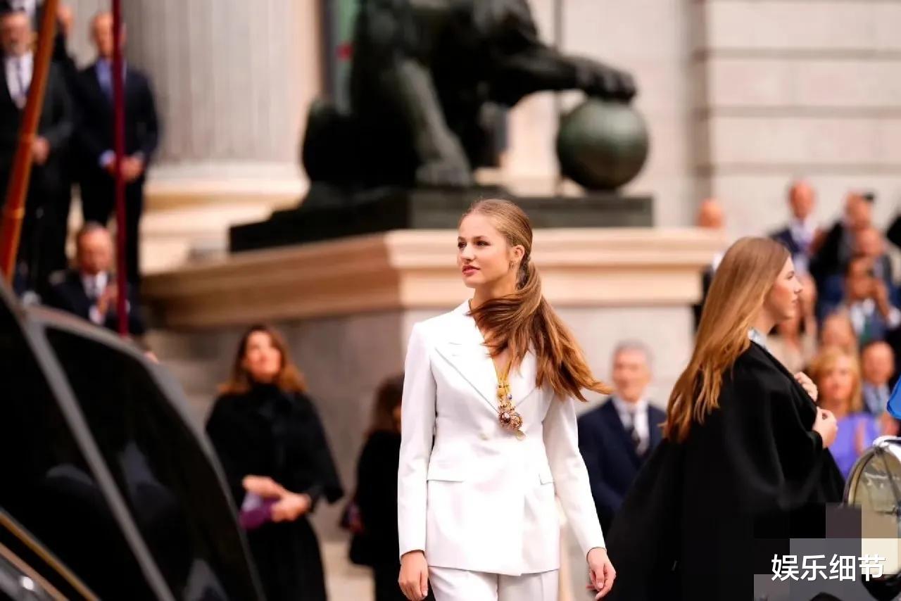 没想到,成人礼当天莱昂诺尔公主直接选择了一套酷酷的白色西服套装,浓密的秀发扎起了一个低马尾,简单又大方。