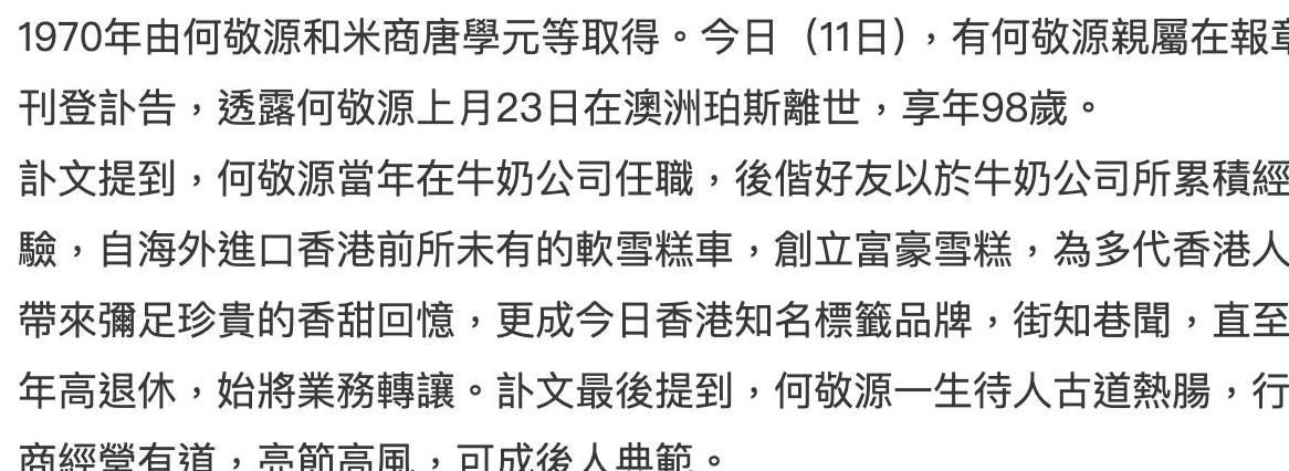 从何敬源的低调人生,到富豪雪糕车的半世纪坚持,不禁让人思考,怎样的一生,才算值得?