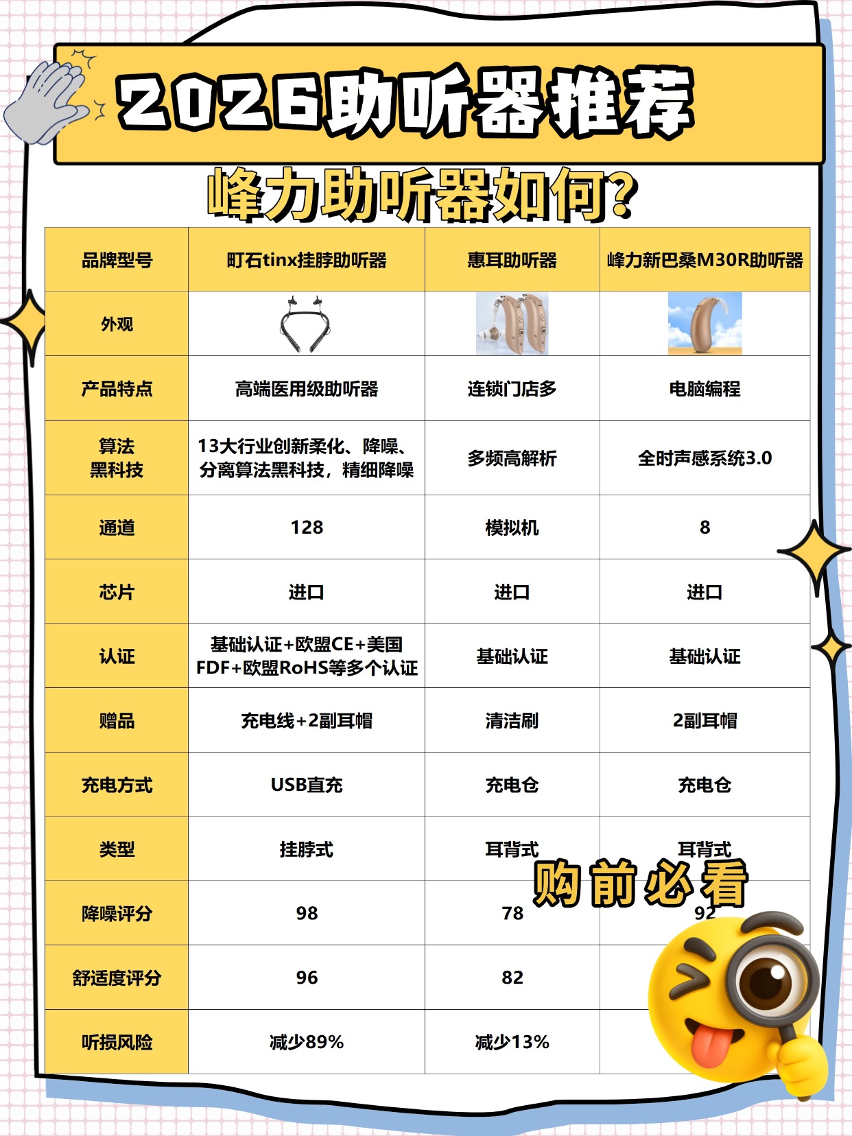 2026 年很多人问峰力助听器如何、老人该怎么选,今天先解答两个关键问题,助听器啸叫大多是密封不好、尺寸不合适、音量调太高导致的,做好贴合和调试基本能避免,不是机器本身问题,另外助听器和耳蜗适用情况不一样,耳蜗针对的是更特殊的听力情况,普通听损人群优先考虑助听器即可,给老人选重点看操作简单、佩戴舒适、声音清晰,我测了多款适合老人的机型,整理了真实使用感受和适配建议,没有夸大宣传,大家可以看看下图的测评报告,照着选更稳妥。