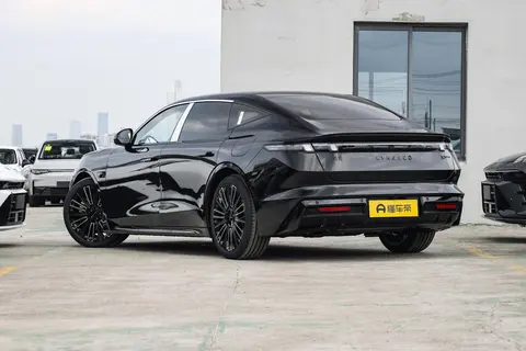 领克10 EM-P前脸采用家族式分体式灯组,上方为标志性“h”形LED日间行车灯,下方为远近光一体式大灯,支持伴我回家照明和自动远近光功能。车侧配备隐藏式门外拉手,车尾为贯穿式尾灯(内部线段式结构),后备厢盖带有“鸭尾”扰流板,后包围底部融入扩散器造型,整体运动感十足。