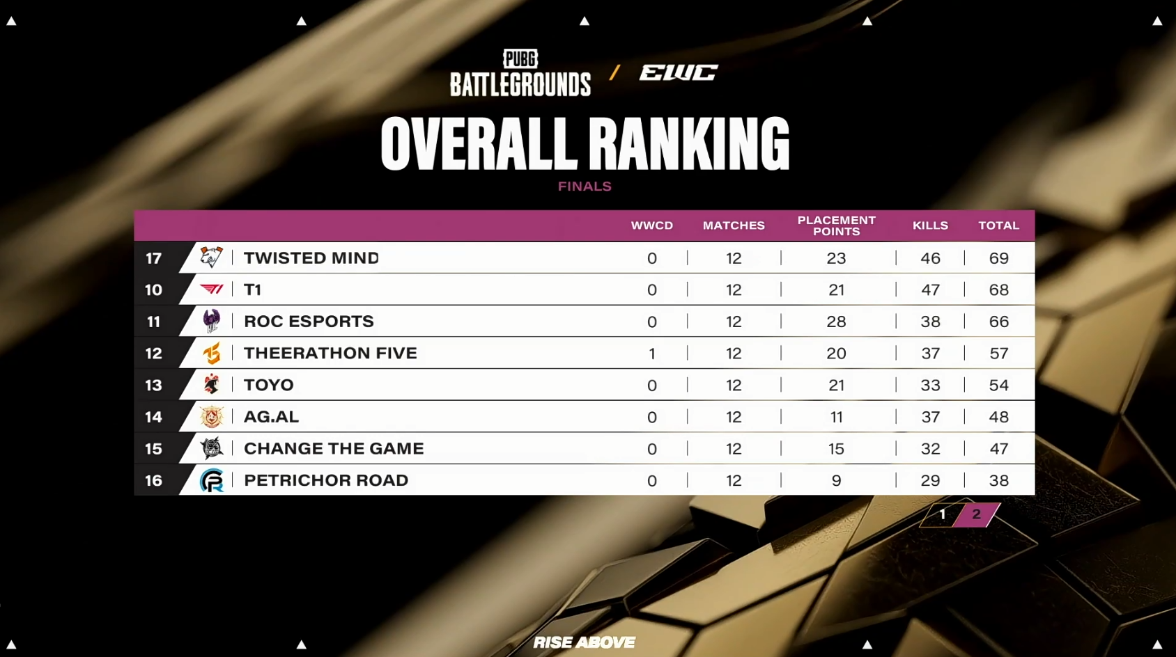 开局TWIS掉两人时还以为会是其他队伍的夺冠剧本,没想到剩下两人这么能活,硬是把队伍拖到了决赛圈,天崩开局还能拿这么多分很有实力了,最终TWIS以93分的成绩斩获EWC绝地求生项目的总冠军,恭喜他们。还有值得一提的是GSW最后这把鸡让他们来到了积分榜前六名,成为了本次EWC排名最高的PCL队伍,之前不少人都说他们是来交学费的,可没人会甘心当经验宝宝,最后放手一搏的他们也算是突破了自我,值得称赞。