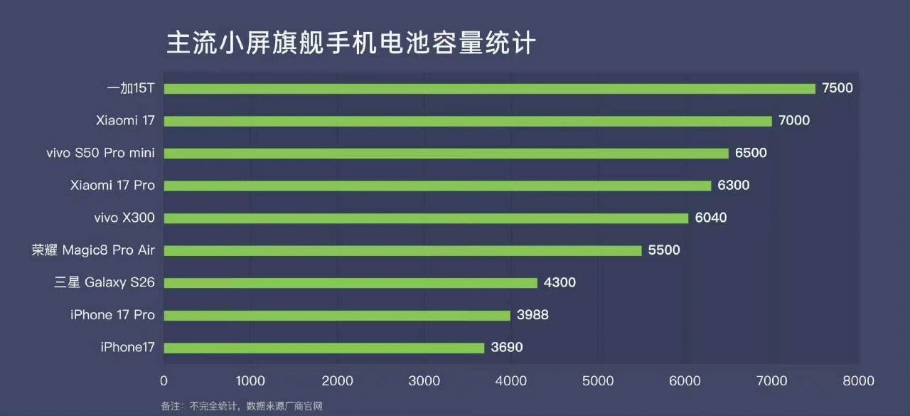 意想不到的是一加15T竟然支持165Hz高屏刷,可以说它应该是截至目前唯一一款支持165Hz高屏刷的小屏手机,其展现出的实力份量,确实值得一提。除此之外,虽然是小屏手机,一加15T却搭载了足足7500mAh的超大容量电池,且重量仅有194g,堪称小屏手机的“储能王”。当然,作为一款性能手机,大容量电池的加入,势必是促成高响应、持久的一大法宝。与此同时,一加15T,还加入了100W的超级闪充,以及50W的无线充电,直接将用户的后顾之忧彻底解决,相比iPhone17e,这突破不是一点半点的酸爽,这也使得不少网友直呼,一加15T比iPhone17e香太多了!