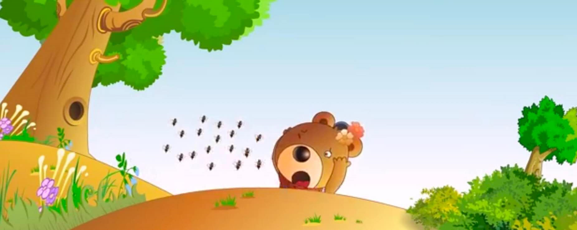 突然,一只蜜蜂在小熊的黑鼻子上叮了一下。