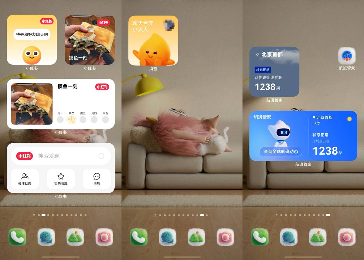 鸿蒙版小红书的“摸鱼一刻”互动卡片也很有趣,点一下不仅能直达推荐内容,退出后还有一条小鱼会在卡片上游来游去,然后会点亮当天的状态。除了上面提到的这些之外,还有鸿蒙版抖音、航班管家、腾讯视频也都支持添加互动卡片,感兴趣的朋友可以去添加试试。
