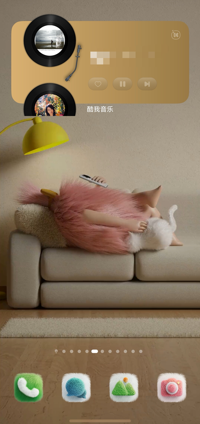 先说说听歌吧,鸿蒙版酷我音乐一直是我的心头好。平常做家务或写东西时,我习惯放点背景音乐。以前切歌、暂停都得点开App。但是添加“互动卡片”后,直接在卡片上就能操作。不过最有意思还的是切歌动画:切歌时左边的圆形唱片海报会向上滑动切换,像真的在换黑胶唱片一样,仪式感满满。