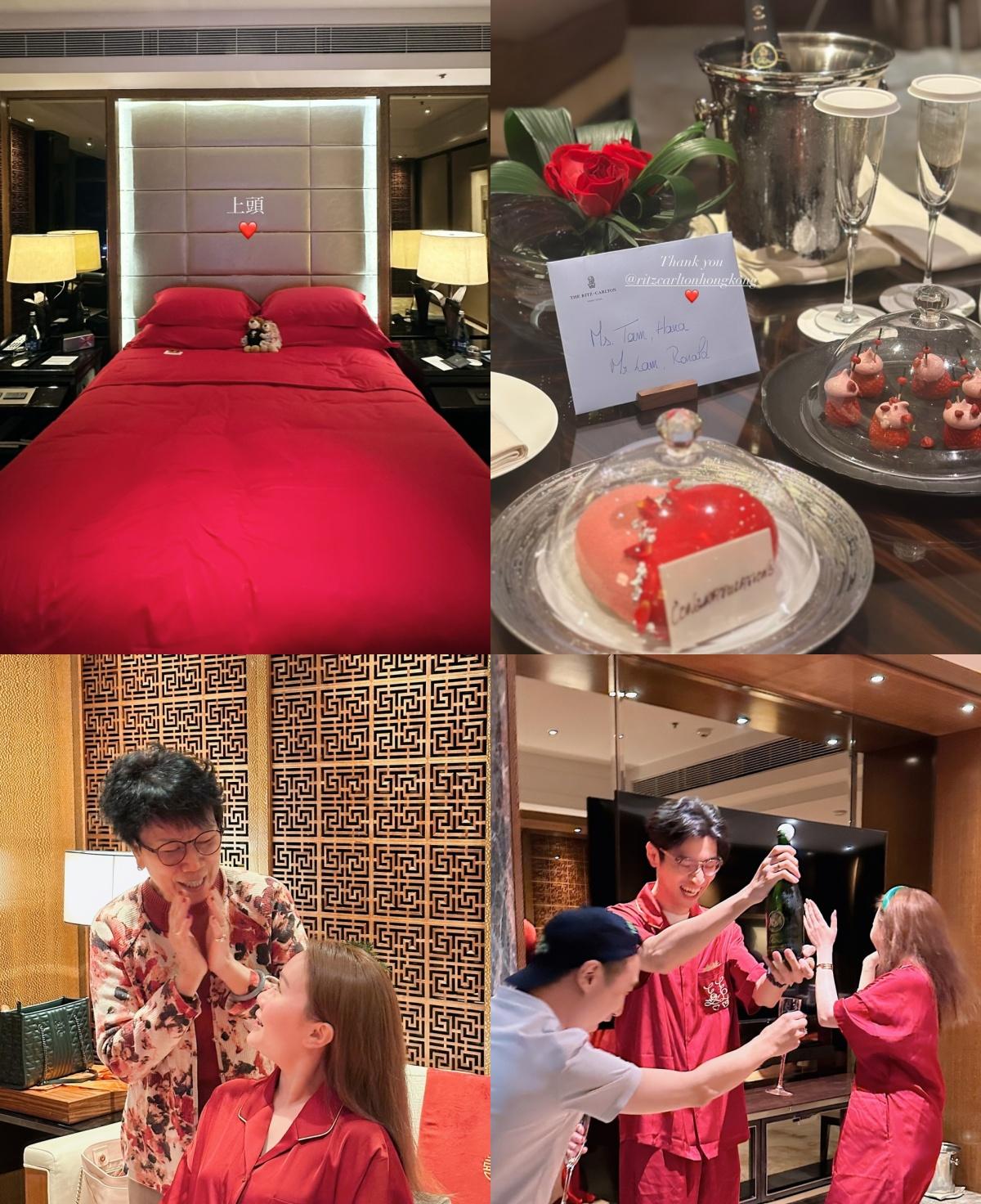 婚礼前一晚(12日),谭杏蓝便遵循传统,在家人的陪伴下举行了上头仪式。