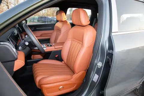 底盘调校偏向舒适平稳,云台底盘 + CDC 电磁悬挂,搭配 5 颗姿态传感器和 4 个智能电磁阀,100 次 / 秒实时调节阻尼,过减速带、不平路面时车身晃动小,无明显颠簸感;起步、刹车时车身姿态稳定,后排老人孩子不会头晕。26 处滤振衬套 + 200/193mm 前后悬架行程,面对非铺装路面也能保持车身平稳。