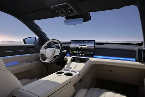 坐进车内,15.6 英寸中控大屏格外显眼,可左右 10° 偏转,搭配四音区语音控制,不管前后排家人唤醒助手,屏幕都会转向回应,互动感十足。语音助手识别准确率不低,既能控制空调、车窗等车辆功能,还能当百科顾问,出游问攻略、孩子问科普都能解答,给旅途添了不少乐趣。