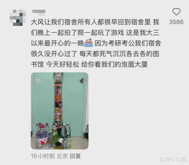 商场发布的免费停车通知。道路边,不少树木倒在了风中,据央视新闻报道,截至12日19时00分,大风将1202棵树木吹倒。一些树枝砸坏了路边停放的车辆。北京全市园林部门累计出动巡查抢险人员近3万人次,人们纷纷留言:园林师傅们辛苦了。除了园林部门的工作人员无法在大风天休息,一些电力职工也一直守候在岗位上,有一线工作人员需要连夜检查电路情况,从11日晚上起就没回家。12日白天通州、延庆等部分地区的居民区遭遇了停电,但很快就恢复了供电。还有为了生计,选择继续在户外奔走的普通人——一些外卖骑手跌倒在风中。社交媒体上,人们开始了熟悉的讨论:“极端天气发生时,到底应不应该点外卖?”过境:回到日常即便是身处同一座城市,人们对这场大风的感受也相差较大。在风力较大的门头沟区,平谷、密云等地区,大风伴随着冰雹和降雨;而在东城、朝阳等市区,很多人只在室内感受到窗户缝隙里传来的风声呼啸。在市内的某小区楼下,有人拍到一对父子,爸爸正带着儿子,坐在用滑板、杆子和床单做成的“帆船”上,顺着风滑行。