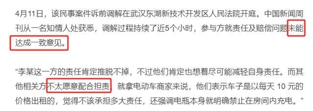 除了李佳俊外,杜均浩家人还起诉了二手电动车租赁商、房东、二房东和三房东等人,可电动车租赁商声称车子每天只收10元租金,不该承担责任,房东们则互相推诿,都说自己不知情。