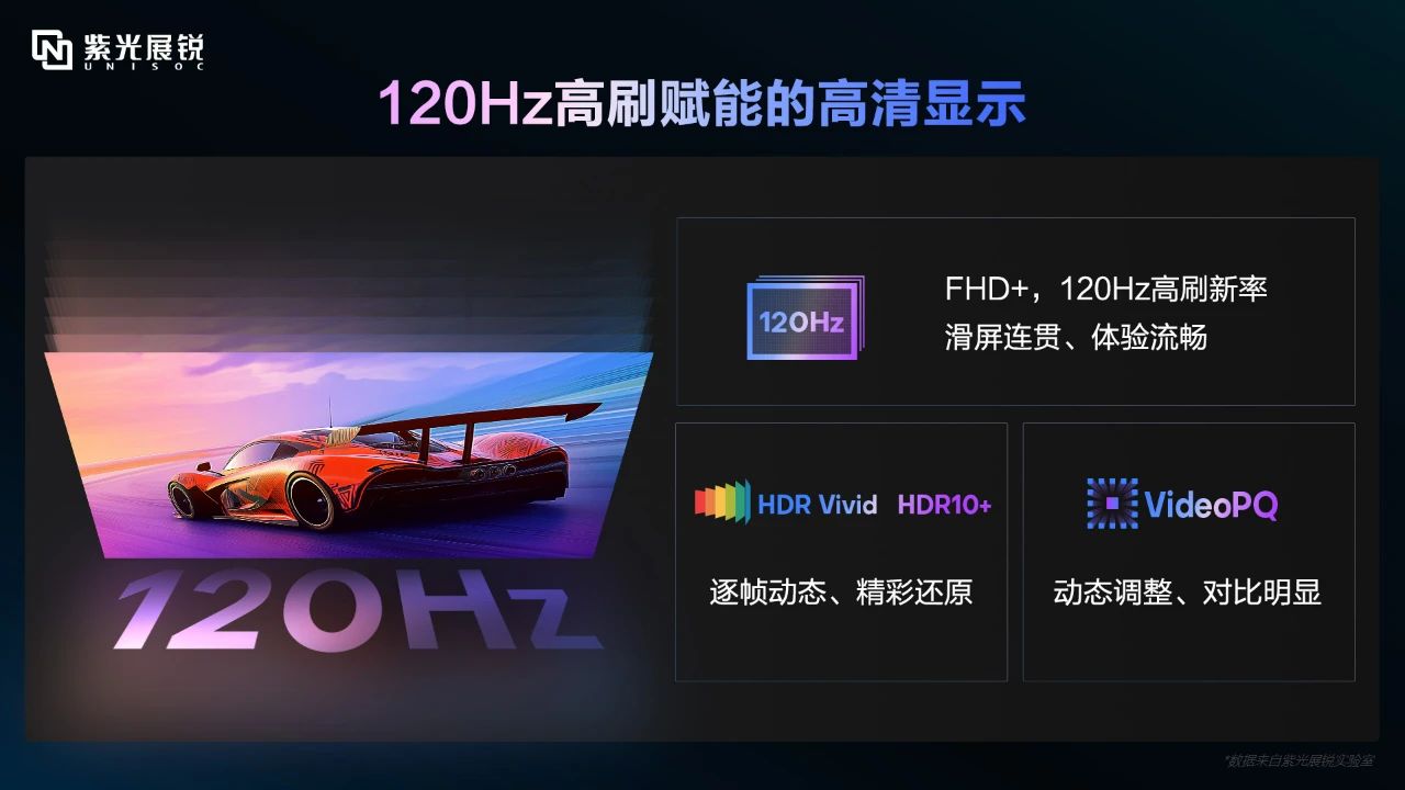 为了给用户带来更加绚丽的画面,紫光展锐T8300采用了FHD+屏幕分辨率,120Hz高刷新率,搭配HDR Vivid、HDR10+技术,画面更逼真、更细腻。VideoPQ动态调整视频对比度技术,让色彩层次更加丰富,细节表现更加出色,视觉冲击更加震撼。