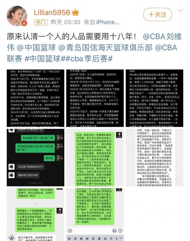 4月3日,一女子在网络上发文怒骂篮球教练刘维伟婚内出轨,且出轨对象也是一个有夫之妇!