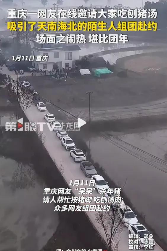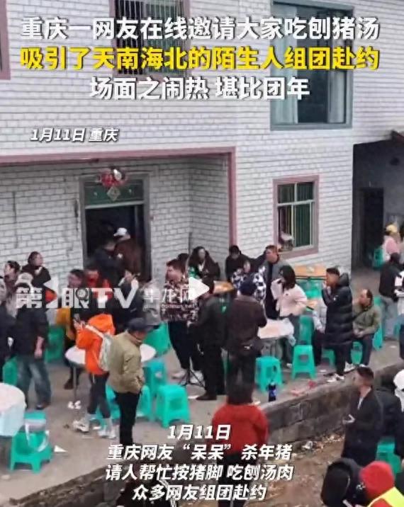 北京时间1月9日,23岁的重庆合川姑娘“呆呆妹”发布的一条求助短视频,本想找几人帮忙给父母按年猪,却意外吸引了4000多名网友前去吃刨猪汤,成为2026年第一个惹大祸的姑娘。过年杀年猪,引爆了网友们的热情。有人说,合川人应该好好把杀年猪的民俗,借这股东风好好打造一下,最好与西班牙斗牛媲美。更多的网友表示,多人协作合力按猪脚杀猪的快乐,是大家最想一起体验的事。