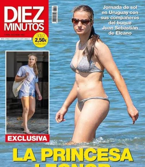 就在这个月的2号,莱昂诺尔公主的首张泳装照竟然登上了杂志封面:身材健美,青春洋溢,腰身曲线更是完美,真是看得人心都花了。听说这本杂志叫“10分钟杂志”,那张照片还是独家提供的哦,拍摄地点是在公主停留的乌拉圭。至于这算不算侵犯隐私,那就见仁见智了,毕竟皇家出品可得有点说法。