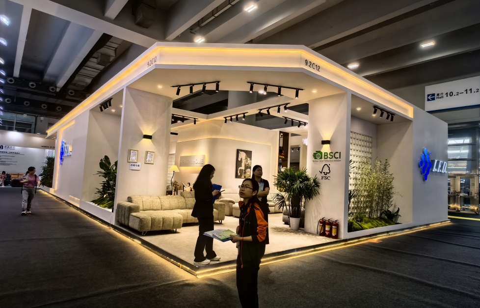 2026 年广州国际家具博览会搭建行业变革显著,绿色可持续成为硬性准入标准,可回收材料使用率、废弃物减量化等指标管控升级,模块化可循环展具系统成主流;数字化技术深度渗透家具展展台制作全链条,VR/AR 预览、BIM 建模等广泛应用,60% 以上大型展台将集成 3 种及以上数字交互设备,科技投入占比升至 15%;企业需求从单一搭建升级为 “参展价值共创”,涵盖策划、搭建、软装配套及展后复盘的全周期服务成核心竞争力;头部品牌对双层展台需求增长,官方指定搭建资质、双层搭建能力等专业化门槛进一步提升。