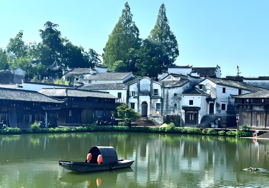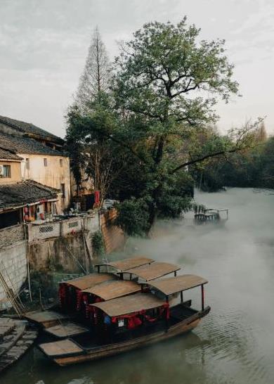 当静立在古镇的永福桥上,耳畔,溪流潺潺,眼前,翠柳在风中舒展身姿,极目远眺,茶楼酒肆人头攒动,而早茶摊边的师傅手持长嘴铁茶壶,将滚烫的热水从壶嘴精准地注入青花茶杯,“刺啦”一声,瞬间茶香四溢,热气袅袅升腾,似是将生活的安然都融入这一杯香茗之中,让人恍若置身于陶渊明笔下的世外桃源般。细碎的嫩绿暖融融的阳光里伸懒腰,撩起层层动人的涟漪。小船悠悠,船身轻晃,灵动的光影在水面上宛转地游走,逐次漫过岸边的白墙、绿柳,还有那蜿蜒的连廊与古朴的石桥,在欸乃桨声里,划入了春天的怀抱。