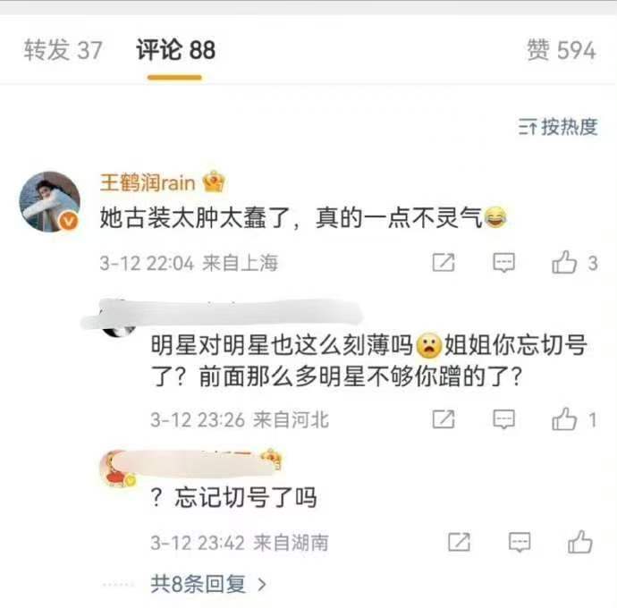 最近,娱乐圈上演了一出因社交媒体“手滑”引发的乌龙事件,让演员王鹤润和王玉雯双双被推上风口浪尖。起因是有博主发文讨论演员王玉雯的新剧造型,认为其古装扮相不够出彩。没过多久,一个意想不到的账号出现在评论区,直言王玉雯的古装“太肿太蠢,一点都不灵气”。更令人咋舌的是,留下这条尖锐评论的,竟是演员王鹤润的个人认证大号。