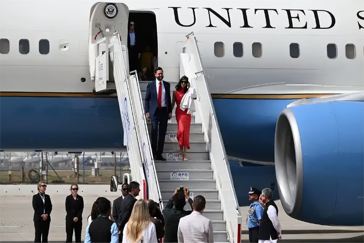 当地时间2025年4月21日,美国副总统万斯和其印度裔妻子乌莎抵达印度新德里