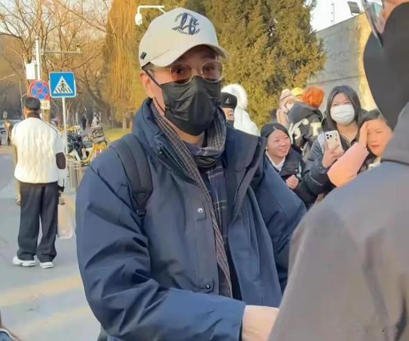 他特意把帽檐压得很低,大半张脸都藏在帽子底下,似乎不想被人过多打扰。