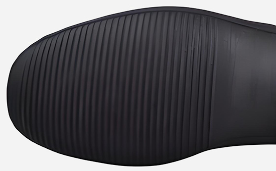 掺用乳胶再生胶生产黑色胶鞋大底时可使用炭黑补强,比如高耐磨炭黑、槽法炭黑,提高胶料的耐磨性和抗撕裂性能;软化剂可使用古马隆树脂、机油、凡士林等软化剂;防老剂D、4010等可有效提高黑色胶鞋大底耐老化性能。