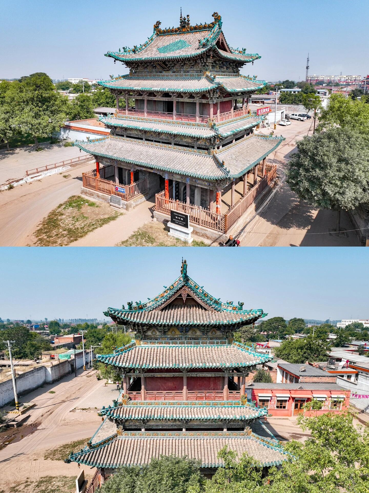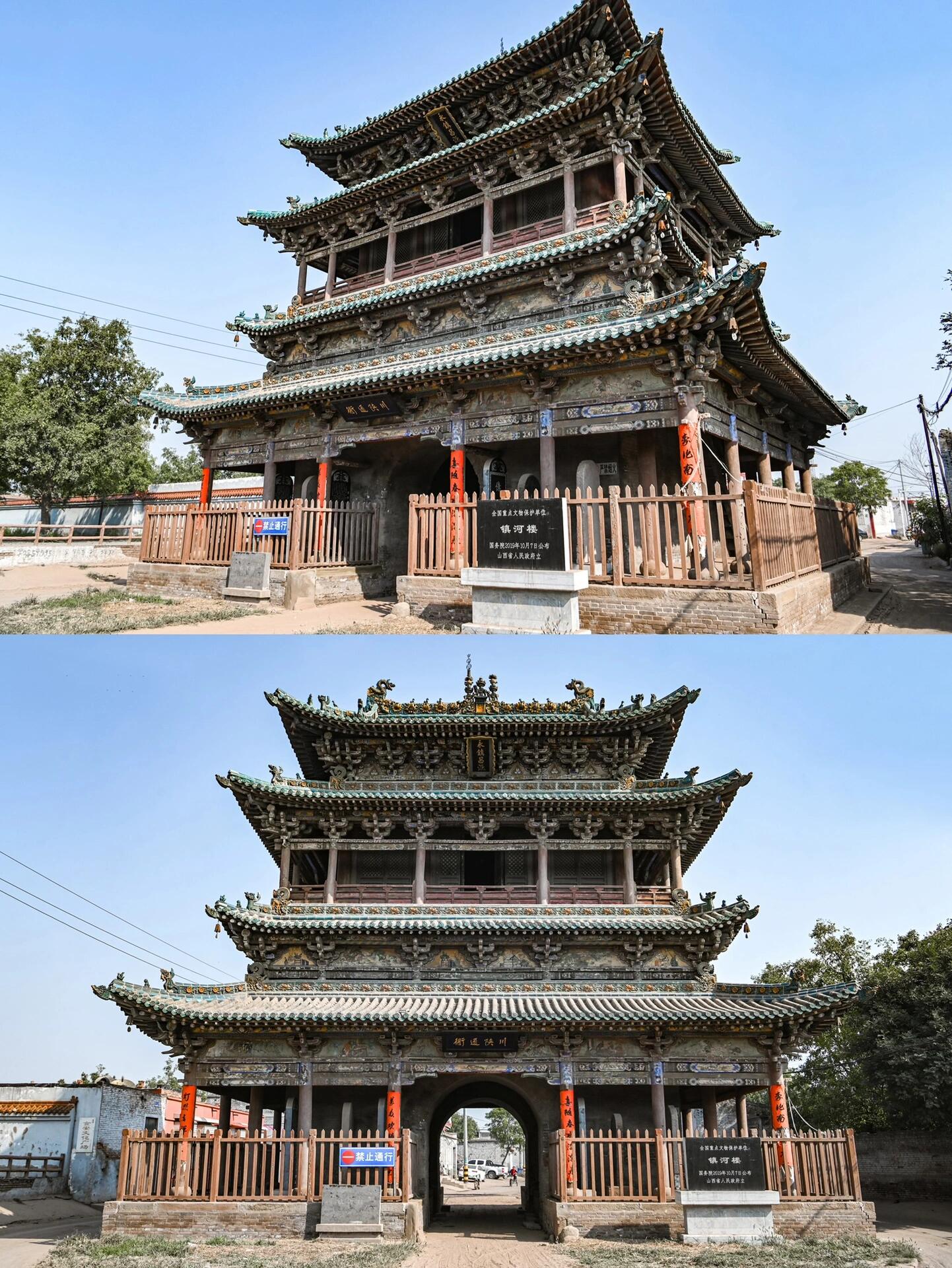 可黄土这东西,从来都不挑食。它先埋了古道上的车辙,再埋了商号的招牌,最后连镇河楼的台基都给裹了半尺厚。现在你去看,楼还是那座楼,18米的高度往天上戳着,只是砖缝里钻出的蒿草比琉璃瓦更惹眼。去年有群拍纪录片的年轻人扛着设备来,镜头扫过墙面时,发现那些清式彩画早被雨水泡得发乌,有块琉璃砖不知被哪个顽童抠走了,留下个黑洞洞的豁口,像老人缺了颗牙。当地老乡蹲在楼根下抽旱烟,说前几年有人来考察,说这楼的价值能抵三个平遥古城的角楼,可话音落了,考察队的车就卷着黄土走了,留下的只有墙上新刷的"文物保护单位"红漆,没多久就被风刮得褪了色。
